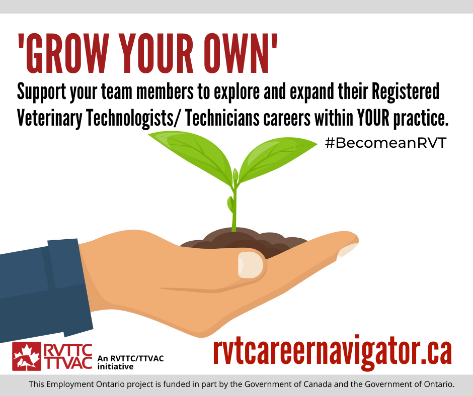 The Registered Veterinary Technologists and Technicians of Canada (RVTTC) encourages veterinary practice owners and managers to use the RVT Career NavigatorTM as a tool to initiate career discussions with your team and find ways to expand their RVT careers within YOUR veterinary practice.
